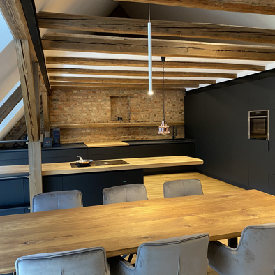 Ihre Küche planen wir individuelle nach Maß und Wunsch. Hierbei setzen wir flexibel die Lösung ein die am besten zu ihrem Raum passt.